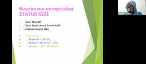 Setelah melakukan langkah-langkah tersebut, barulah relawan dapat mengecek status gizi lansia. Ada beberapa indikator yang dapat digunakan dalam melihat status gizi lansia. Indikator tersebut antara lain adalah tinggi dan berat badan lansia yang normal, tebal lemak bawah kulit daerah tricep yang di bawah 16mm bagi pria, dan di bawah 28mm bagi wanita, serta lingkar lengan atas yang di atas 22 cm. Selain itu, lingkar pinggang juga dapat digunakan sebagai indikator status gizi lansia. Lingkar pinggang lansia laki-laki normalnya adalah di atas 90 cm dan perempuan di atas 80 cm. “Jika ternyata di bawah dari angka normal, tandanya kita sudah perlu melakukan pengawasan pada lansia yang bersangkutan,” tambah Nur.
